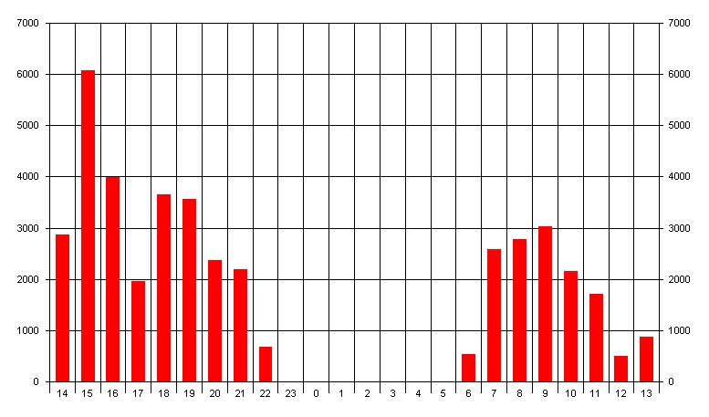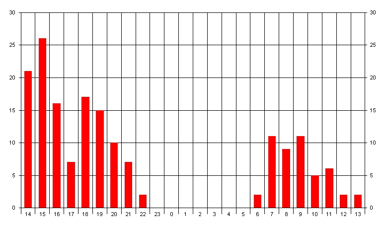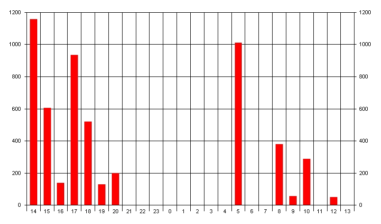QSOs nach Zeit im Juli 2005 auf 1296MHz