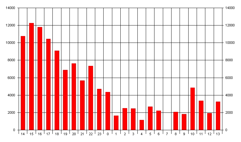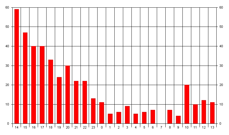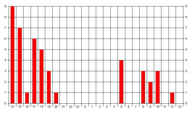 QSOs nach Zeit im Juli 2005 auf 432MHz