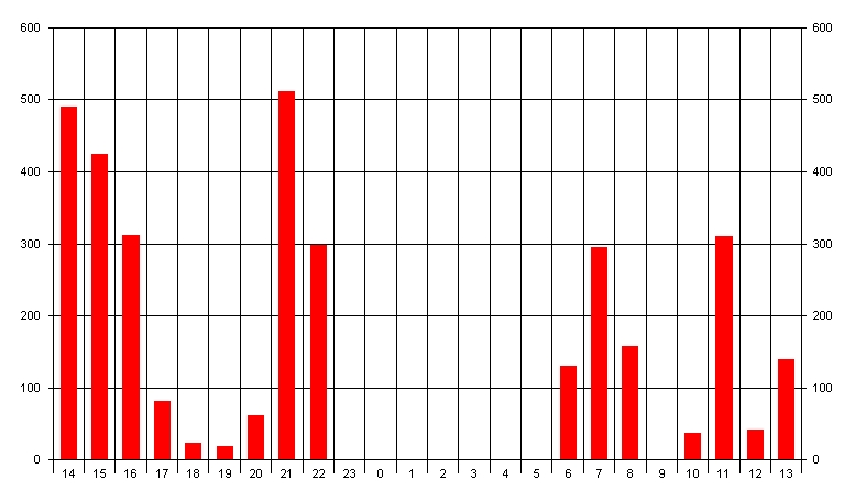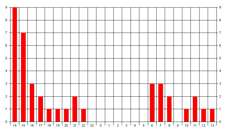 QSOs nach Zeit im Juni 2005 auf 1296MHz