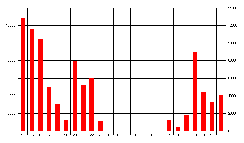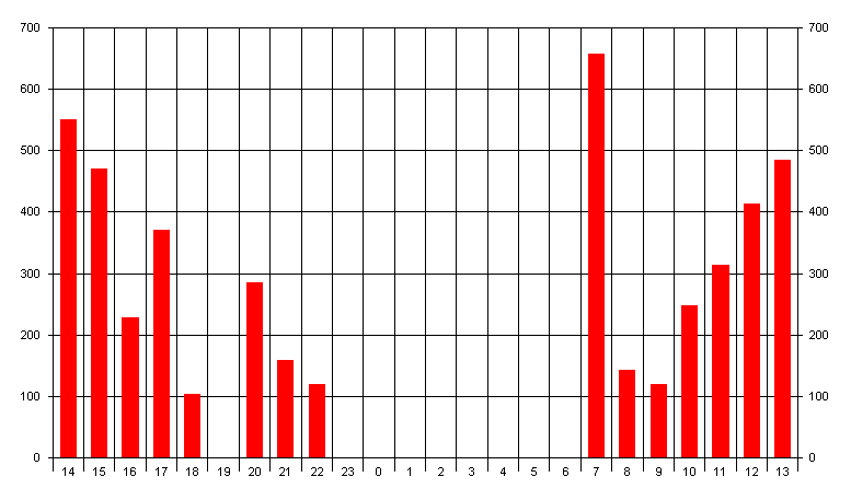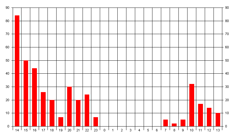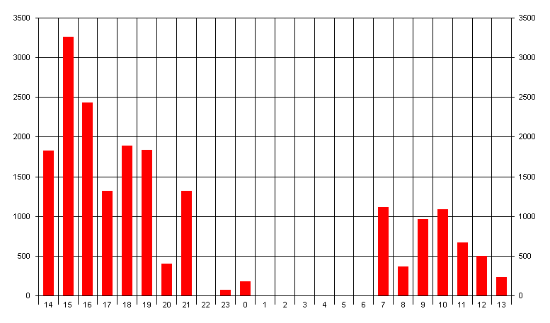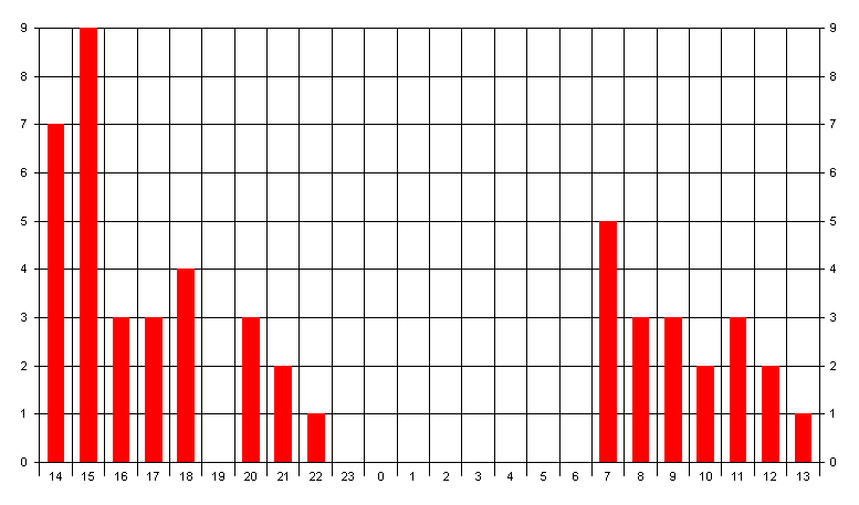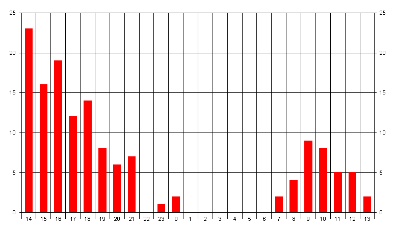 QSOs nach Zeit im März 2005 auf 1296MHz