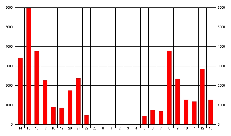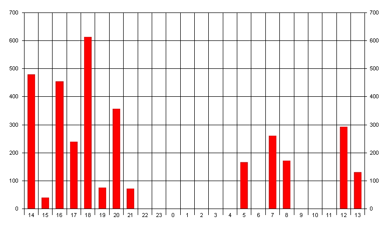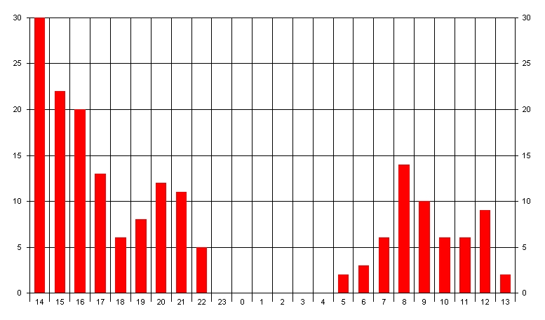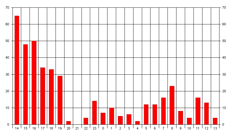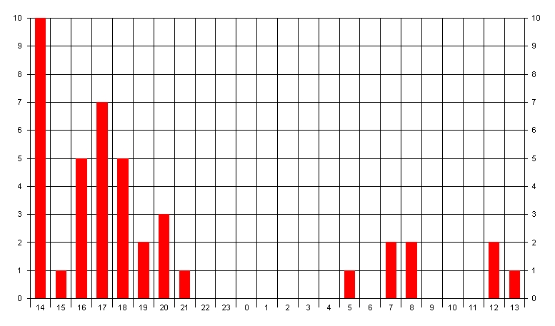 QSOs nach Zeit im Mai 2005 auf 432MHz