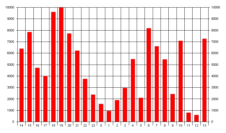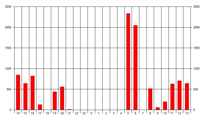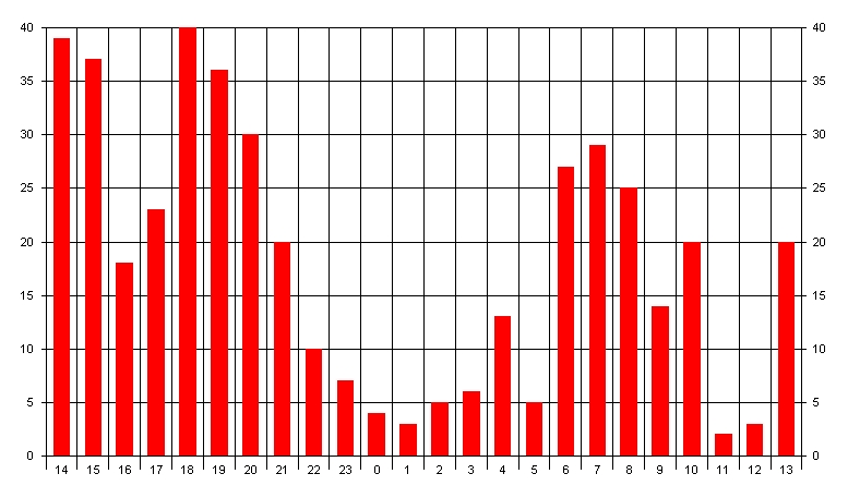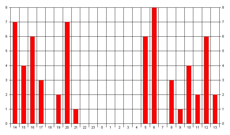 QSOs nach Zeit im Mai 2007 auf 144MHz