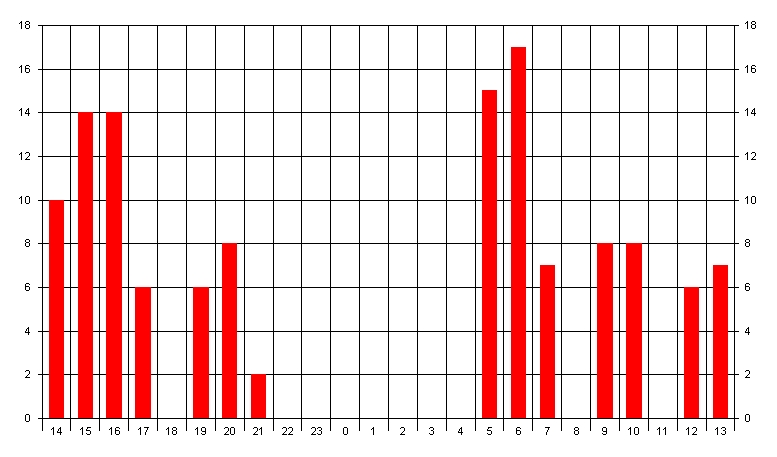 QSOs nach Zeit im Mai 2007 auf 432MHz