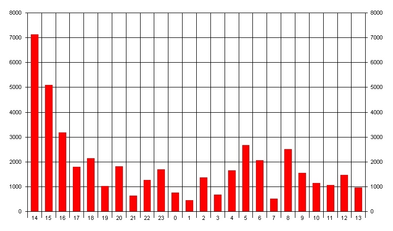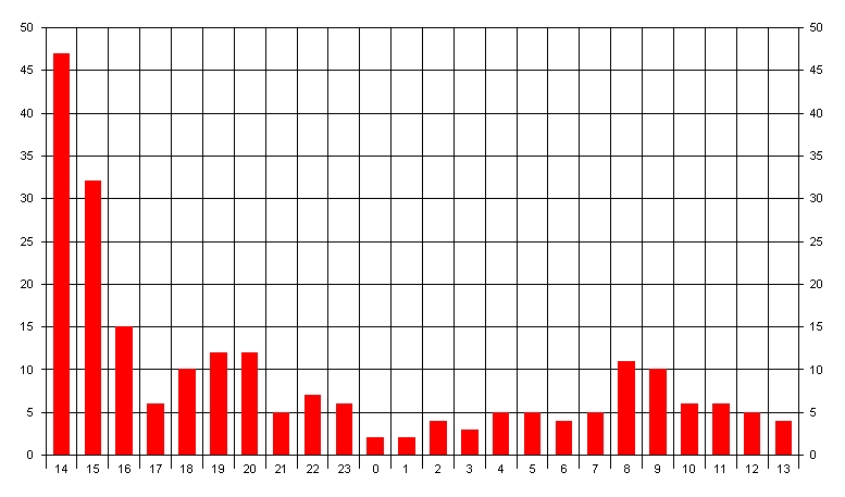 QSOs nach Zeit im Oktober 2005 auf 432MHz
