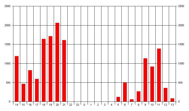 QSOs nach Zeit im Oktober 2007 auf 1296MHz
