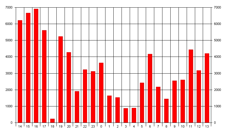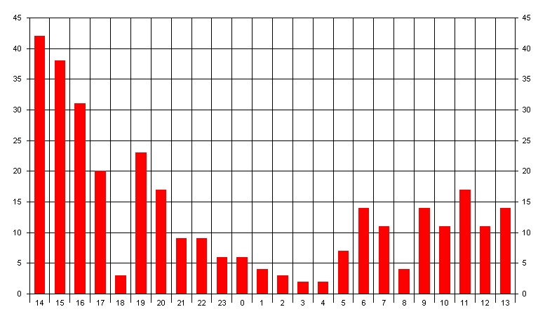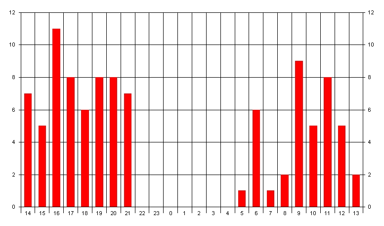 QSOs nach Zeit im Oktober 2007 auf 432MHz