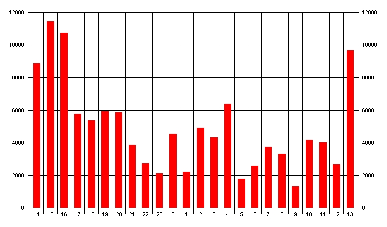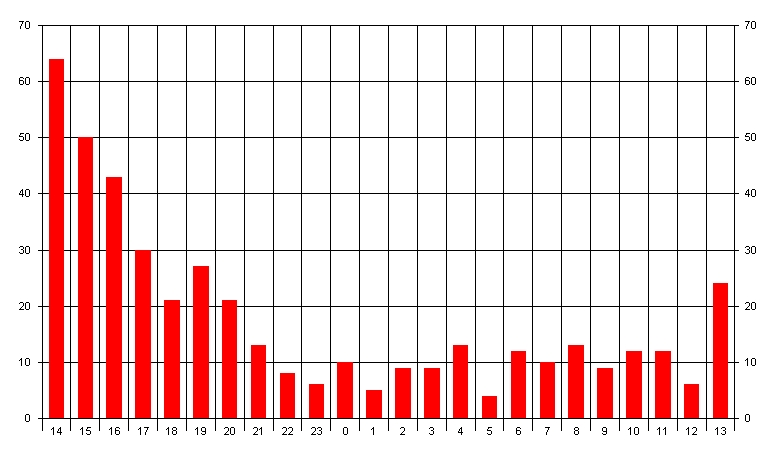 QSOs nach Zeit im September 2005 auf 144MHz